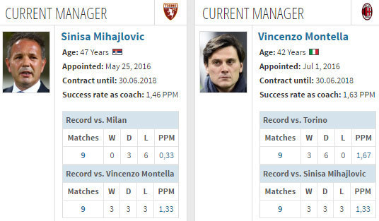Milan selalu cuma bisa meraih hasil imbang dalam tiga laga tandang terakhirnya melawan Torino di Serie A. Musim lalu, kedua tim ini bermain seri 1-1 di Turin.