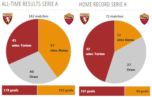 Rekor kandang Torino vs Roma (Serie A)
