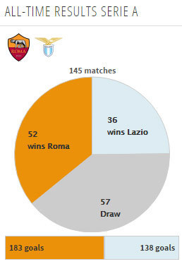 Roma juga makin menegaskan keunggulan head-to-head mereka atas Lazio di Serie A. Sejauh ini, Roma sudah mengalahkan Lazio 52 kali, imbang 57 kali dan kalah 36 kali di kasta tertinggi Italia.