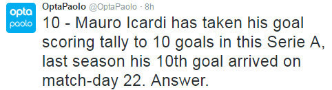 Di Serie A musim lalu, Icardi baru mendapatkan golnya yang ke-10 pada giornata 22. Musim ini, hanya dalam 12 giornata awal, Icardi sudah mendapatkannya.