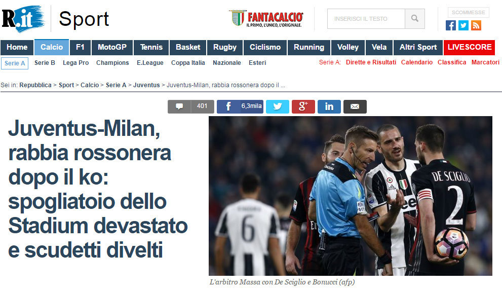 Dilaporkan, para pemain Milan menendang dan memukul loker-loker serta kursi-kursi. Mereka juga kabarnya merusak beberapa logo Juventus di dinding.