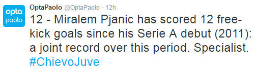 Itu adalah gol tendangan bebas ke-12 Pjanic di Serie A sejak gelandang 26 tahun Bosnia tersebut melakoni debutnya di kompetisi ini bersama AS Roma pada 2011. Selama periode yang sama (2011 sampai sekarang), tak ada pemain lain yang mencetak gol tendangan bebas lebih banyak daripada Pjanic di kasta tertinggi Italia.