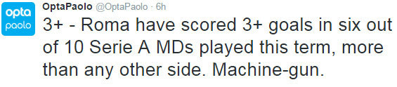 Dengan hasil tersebut, berarti Roma selalu mencetak tiga gol atau lebih dalam enam dari 10 laga yang sudah mereka mainkan di Serie A musim ini. Dibandingkan tim-tim lain, Giallorossi lah yang paling sering melakukannya.