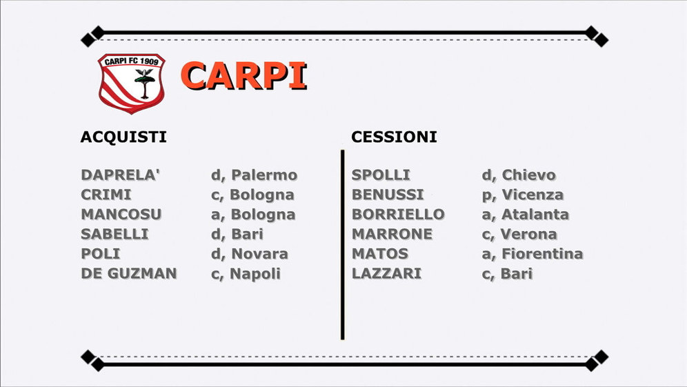 Fabrizio Poli - bek sentral (26 tahun) - Novara (akhir masa pinjam)