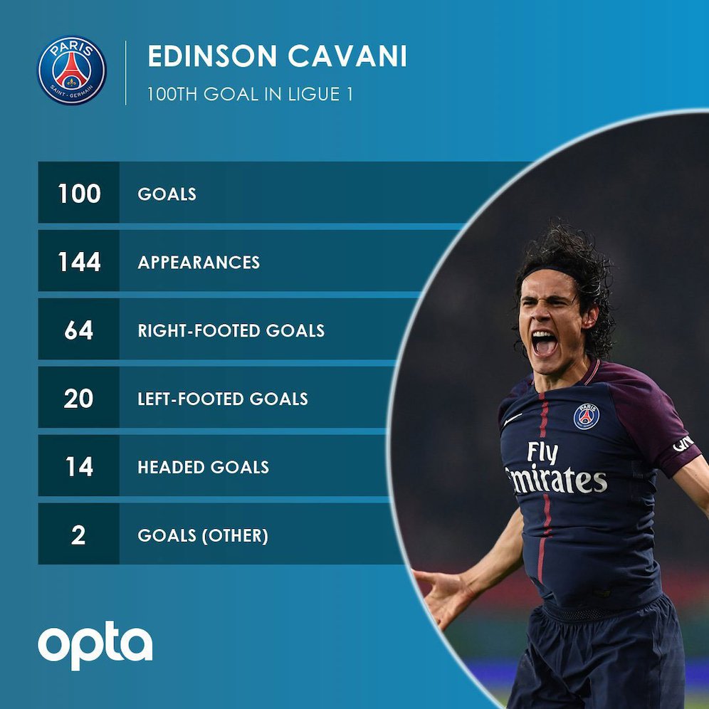 Pada musim lalu, Cavani mencetak 35 gol dalam satu musim di Ligue 1. Dan, dari 11 laga yang sudah dimainkan pada musim 2017/18 ini, Cavani sudah mencetak 13 gol untuk PSG.