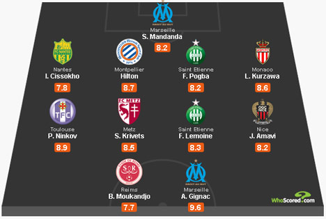 Marseille 3 (Andre-Pierre Gignac 50, 63, Romain Alessandrini 90+4) Rennes 0