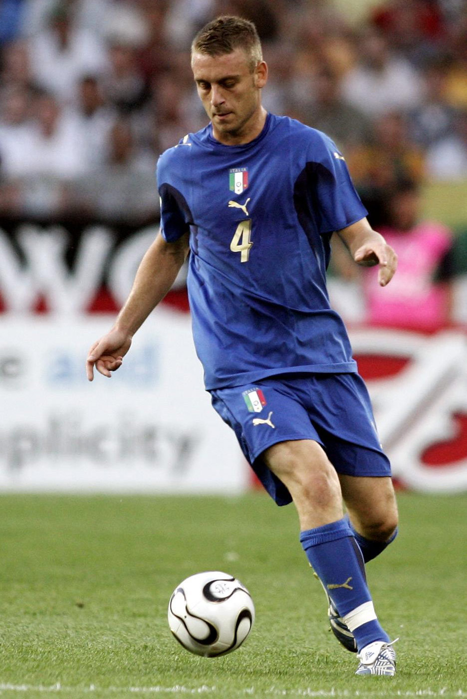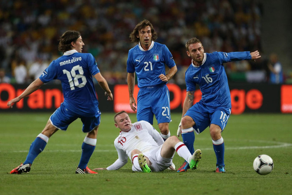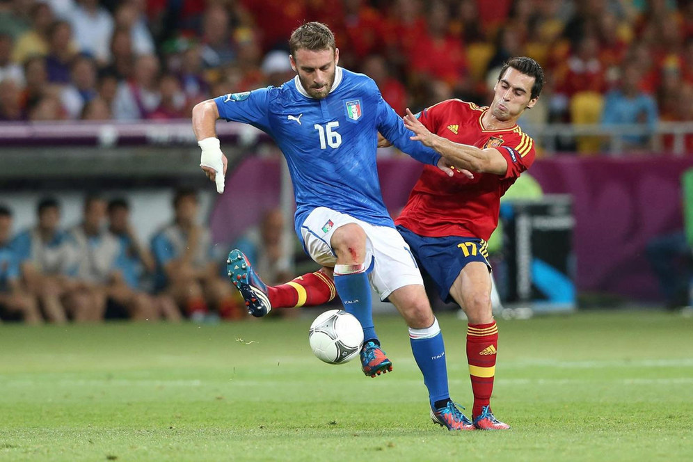 - Gelandang Daniele De Rossi akan diberi penghargaan oleh UEFA sebelum kick-off Italia vs Spanyol di Turin dini hari nanti. Penghargaan itu diberikan kepada De Rossi karena sudah melampaui 100 cap dengan seragam Azzurri.