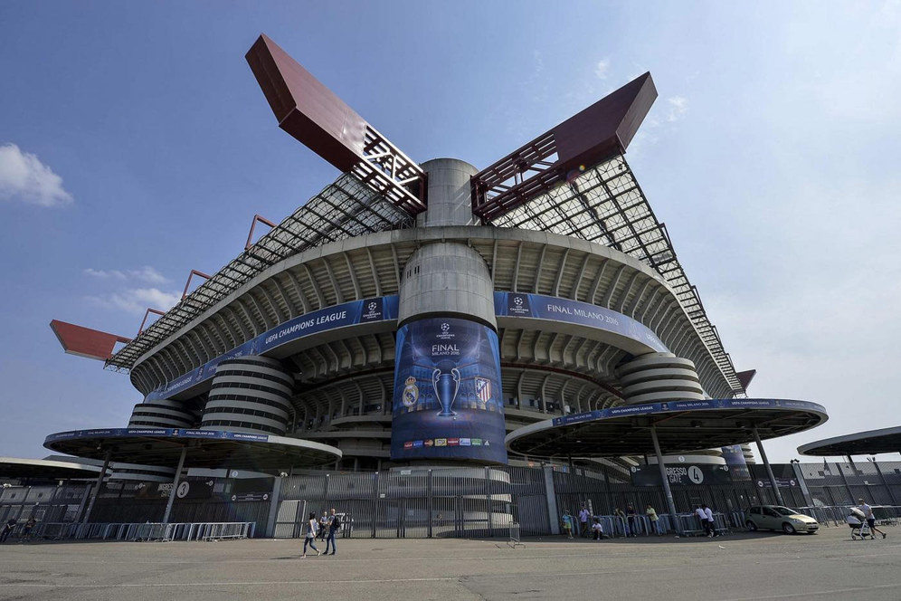 - Stadio Giuseppe Meazza, yang lebih dikenal pula dengan nama San Siro, adalah stadion kandang AC Milan dan Inter Milan. Kini, stadion yang terletak di distrik San Siro, Milan, itu sudah berusia 90 tahun.