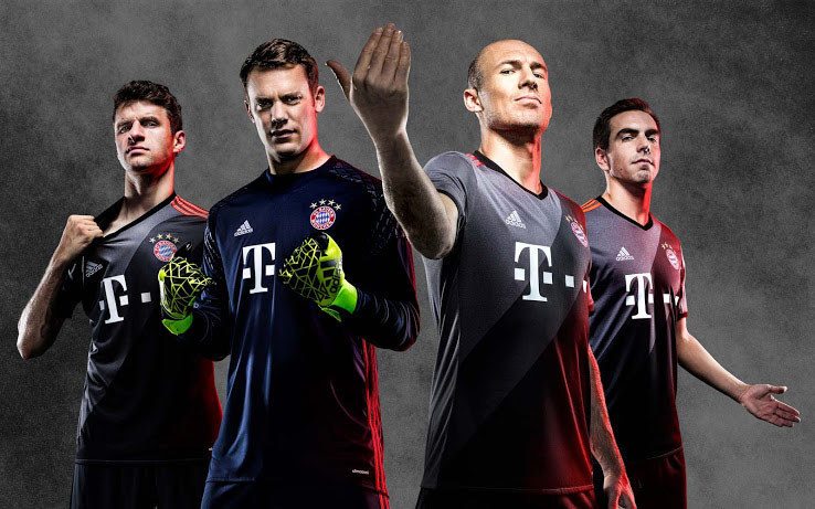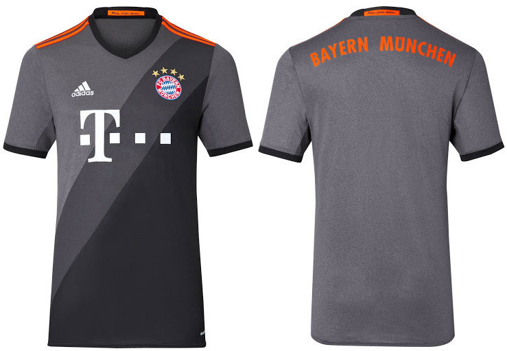 - Raksasa Bundesliga Jerman Bayern Munchen resmi memperkenalkan jersey tandang baru mereka untuk musim 2016/17. Jersey buatan Adidas ini mengusung warna dasar abu-abu dengan paduan elemen hitam dan oranye.