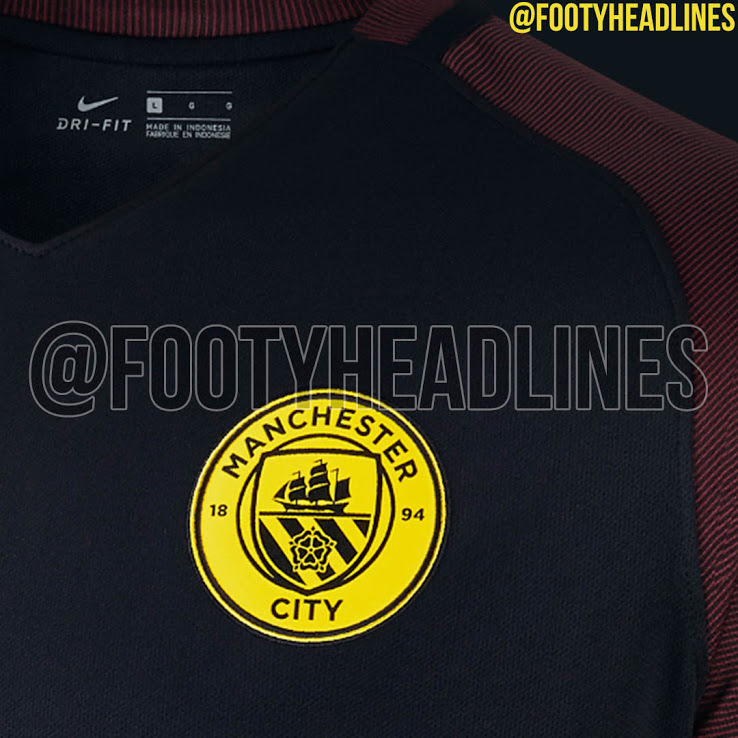 - Manchester City bakal memakai jersey tandang berwarna kombinasi hitam dan merah dengan aksen-aksen kuning di musim 2016/17. Dilansir Footy Headlines, berikut beberapa fotonya.