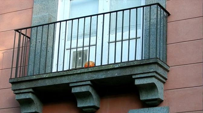 Mendarat di balkon rumah orang.