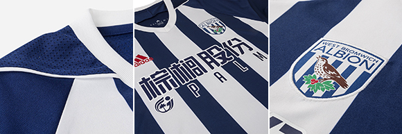 Masih dengan pola garis-garis vertikal berwarna putih dan biru navy, jersey kali ini didominasi oleh warna yang lebih gelap. Musim lalu bagian belakang jersey West Brom berwarna putih polos, namun kali ini warna biru navy yang dipilih.