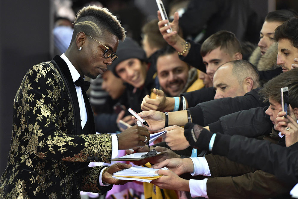 Saat kebanyakan pemain datang memakai setelan formal berwarna hotam, Pogba memilih atasan hitam bermotif bunga warna emas. Dilihat sekilas, Pogba seperti memakai batik Indonesia.