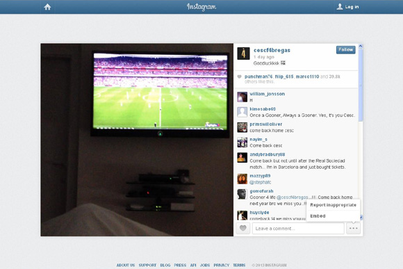 Pasalnya, ketika Arsenal bermain melawan Stoke City pada akhir pekan lalu, Fabregas memposting video melalui situs mikro sosial; Instagram, ketika ia tengah asyik menonton laga tersebut.
