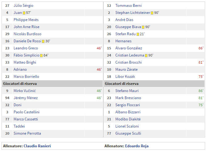 Roma unggul melalui penalti Marco Borriello di menit 53. Hanya lima menit berselang, Hernanes menyamakan kedudukan untuk Lazio, juga lewat titik 12 pas. Gol penentu kemenangan Roma dicetak Fabio Simplicio memanfaatkan bola liar dari penetrasi Jeremy Menez yang dihadang bek-bek Lazio di menit 77.