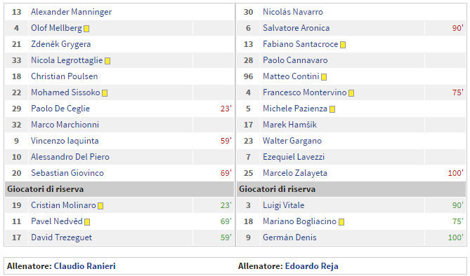 Diwarnai kegagalan Pavel Nedved dan Mohamed Sissoko dari kubu Juventus serta Ezequiel Lavezzi hingga Walter Gargano dari pihak Napoli, Bianconeri akhirnya memenangi adu penalti itu dengan skor 4-3. Anak-anak asuh Claudio Ranieri menyingkirkan Napoli dan lolos ke semifinal.