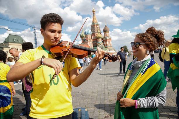 Berikut foto-foto fans kedua tim yang dilansir AFP dan TASS.