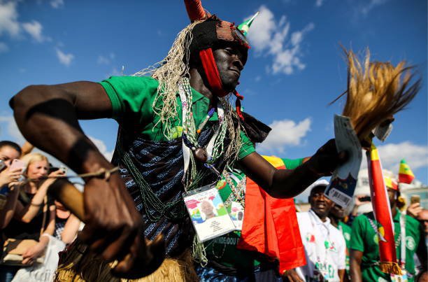 Berikut foto-foto fans kedua tim yang dilansir AFP dan TASS.