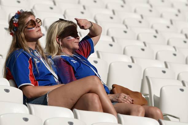 Berikut foto-foto fans kedua tim yang dilansir AFP dan TASS.