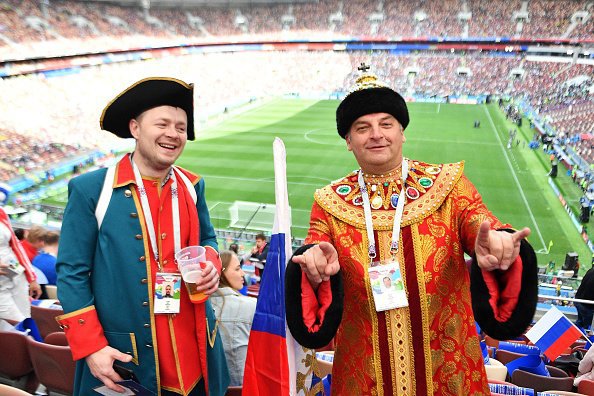 Bola.net - - Laga pembuka Piala Dunia 2018 menampilkan tuan rumah Rusia melawan Arab Saudi, Kamis (14/6). Pertandingan jadi lebih menarik berkat kehadiran para fans dengan dandanan khasnya masing-masing.