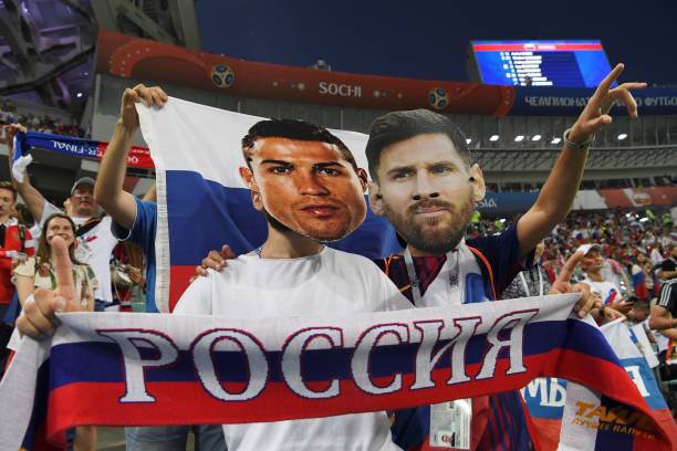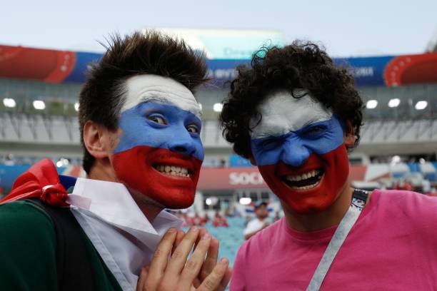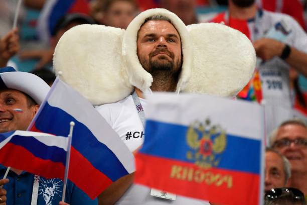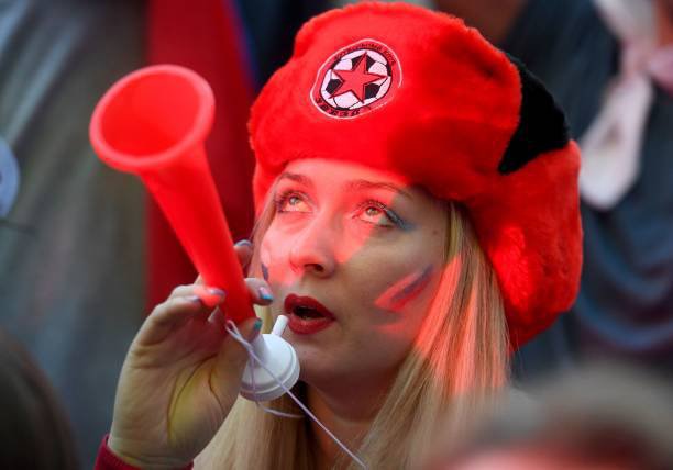 Berikut foto-foto fans kedua tim yang dilansir AFP dan TASS.