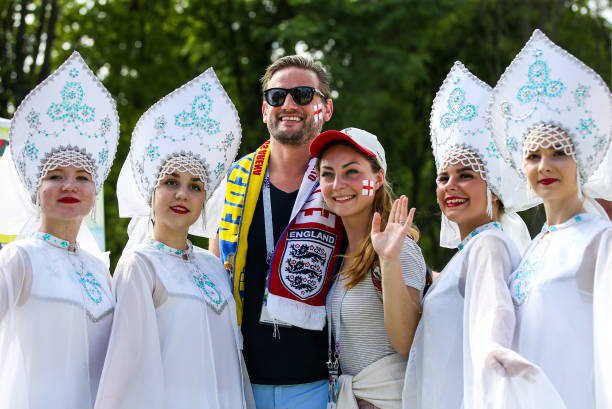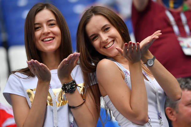 Berikut foto-foto fans kedua tim yang dilansir AFP dan TASS.