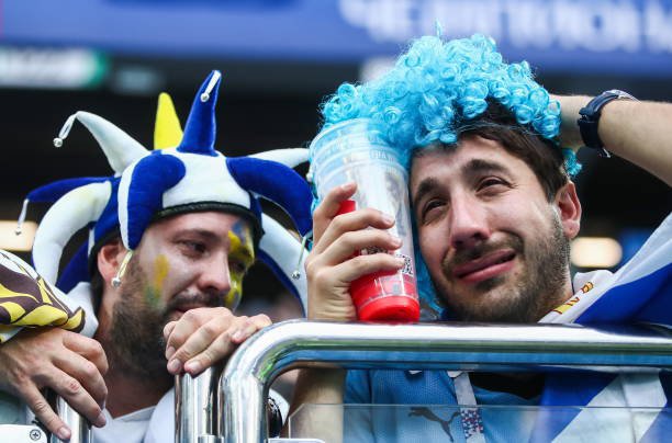Berikut foto-foto fans kedua tim yang dilansir AFP dan TASS.
