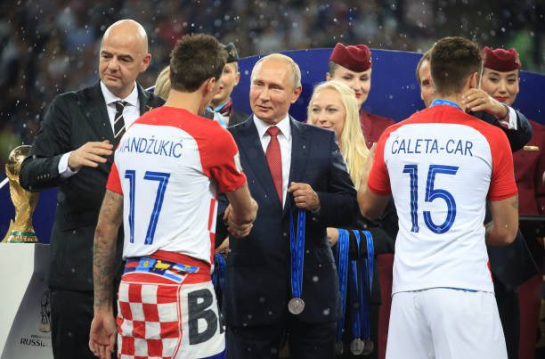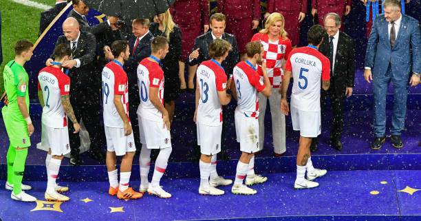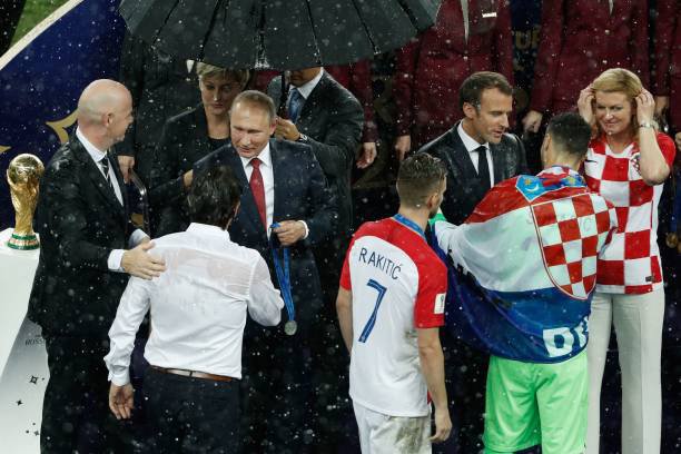 Medali perak diberikan kepada skuat Kroasia di Luzhniki Stadium yang diguyur hujan deras. Kapten Kroasia Luka Modric juga mendapatkan penghargaan Bola Emas untuk pemain terbaik. Berikut foto-fotonya yang dilansir oleh AFP dan TASS.
