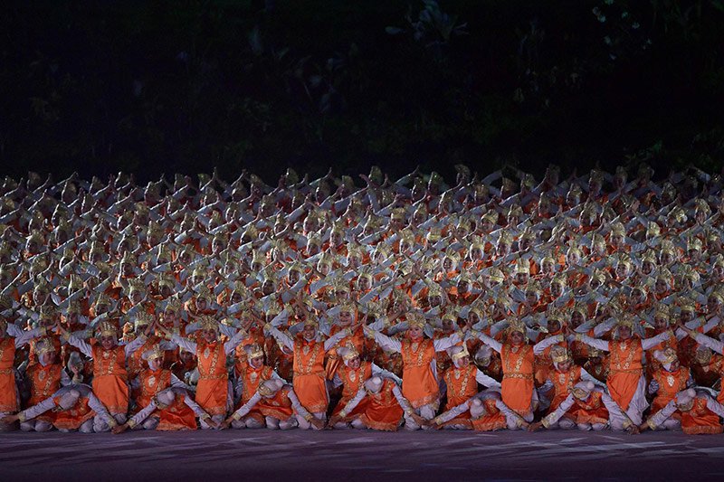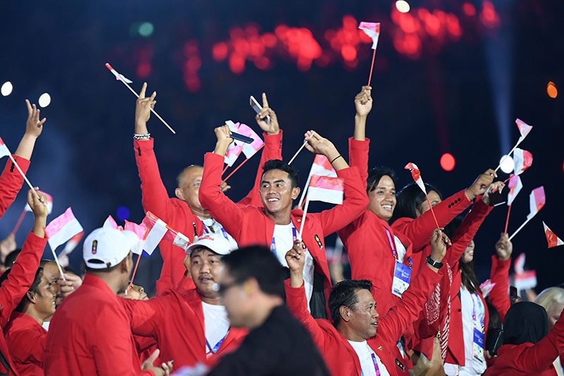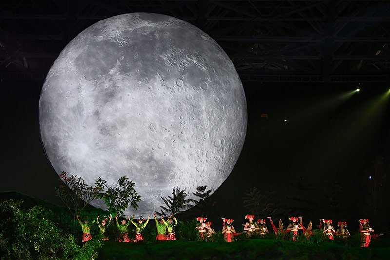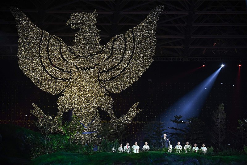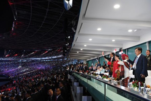 - Upacara pembukaan Asian Games 2018 di Stadion Utama Gelora Bung Karno Jakarta berlangsung spektakuler dan meriah melibatkan ribuan seniman, dari penari, musisi hingga perupa. Seremoni ini sendiri dihadiri langsung oleh Presiden Joko WIdodo dan Ibu Negara. Berikut beberapa fotonya yang dilansir oleh AFP dan Antara.