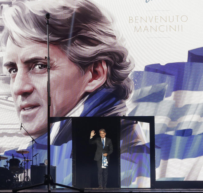 Berikut foto-foto presentasi Mancini yang digelar di Leningrad Center, Saint Petersburg, Selasa (13/6), yang dilansir Corriere dello Sport.