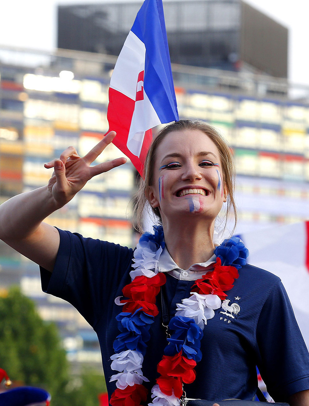 - Berikut beberapa foto suporter wanita tuan rumah Prancis dari pertandingan ketiga mereka di Grup A Euro 2016, yakni melawan , Senin (20/6).