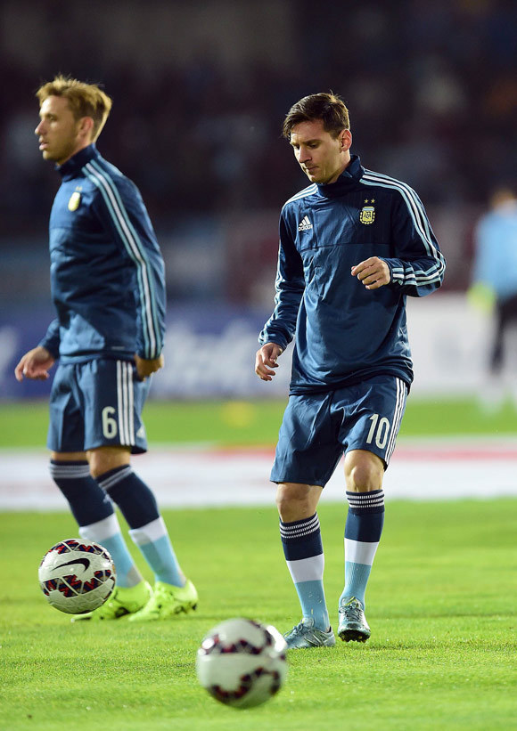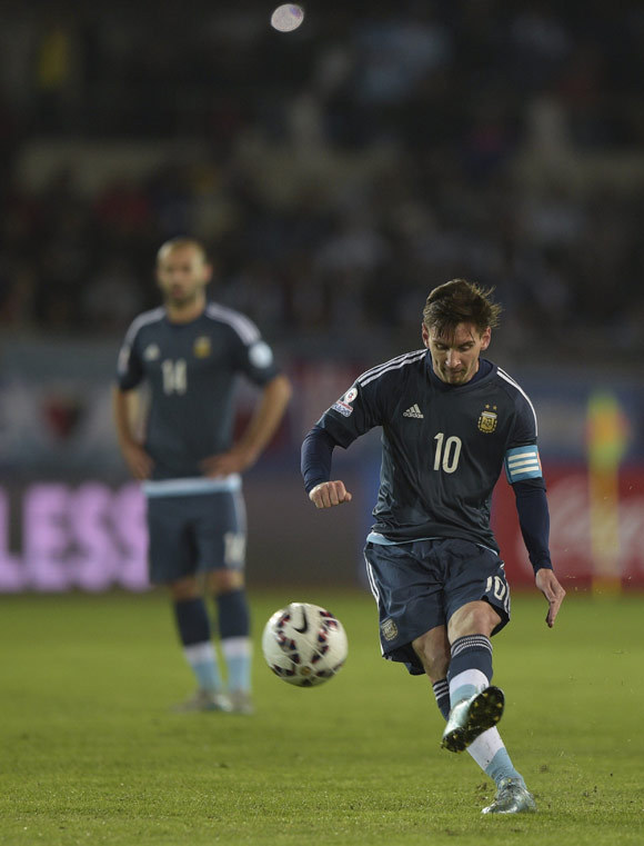 Berikut foto-foto terbaik Messi dari laga di Estadio La Portada tersebut.