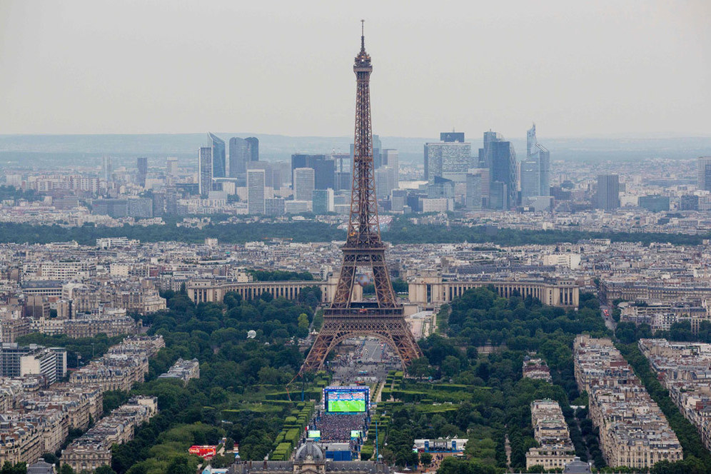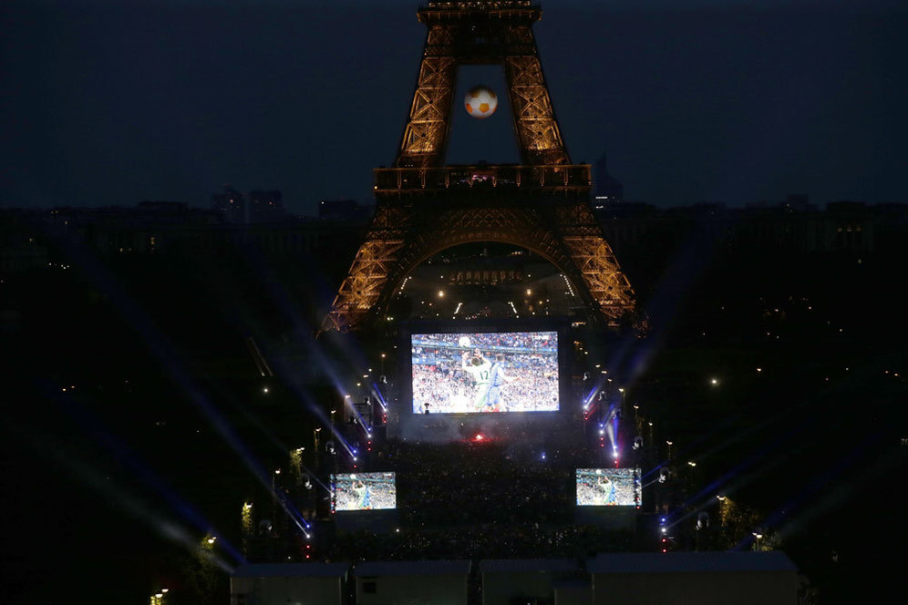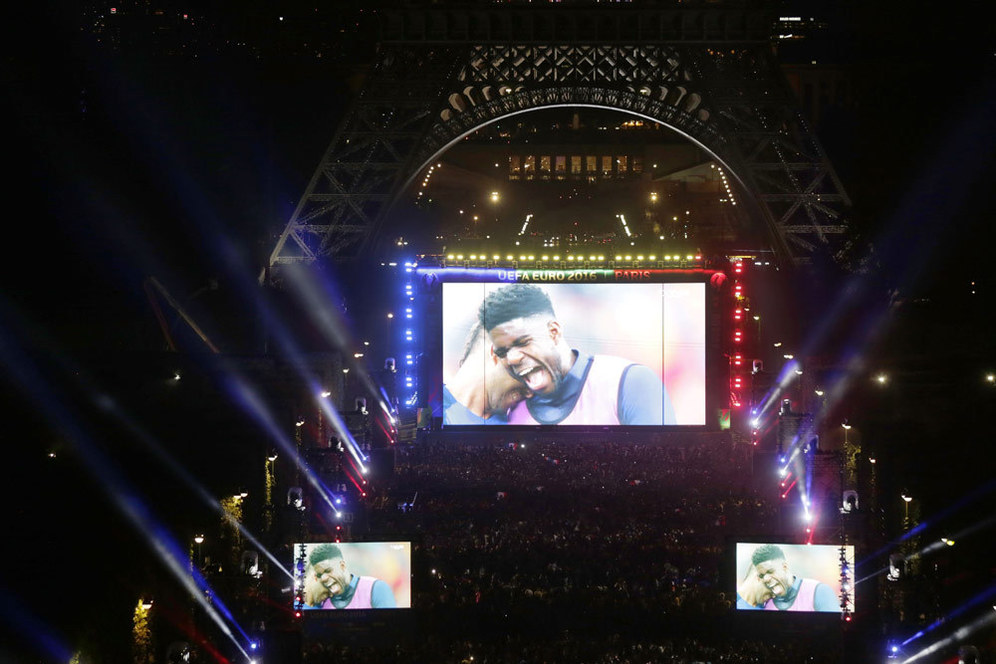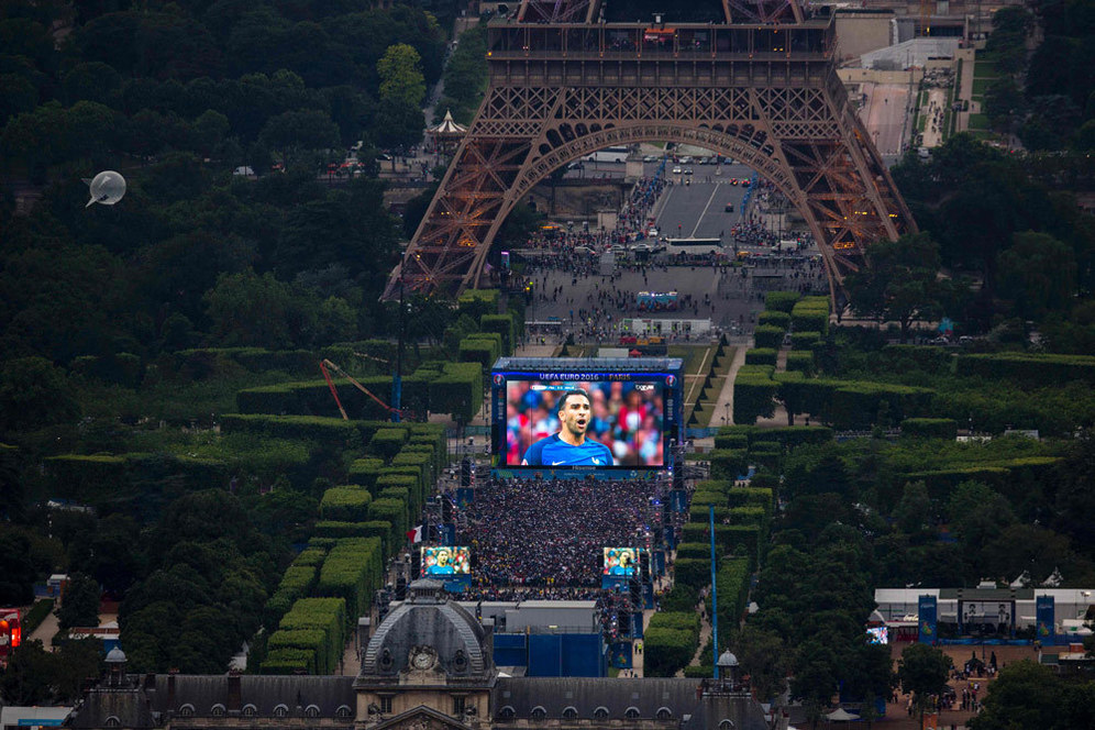 - Laga pembuka EURO 2016 antara Prancis melawan Rumania ditonton seantero Prancis. Ada beberapa titik fan zone, termasuk di menara Eiffel.
