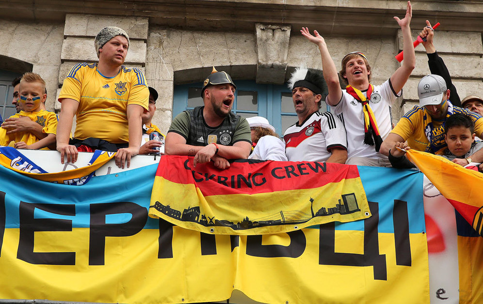 - Jerman memukul Ukraina 2-0 dalam pertandingan pertama mereka di Grup C Euro 2016, Senin (13/6). Sepakbola tak lengkap tanpa suporter.