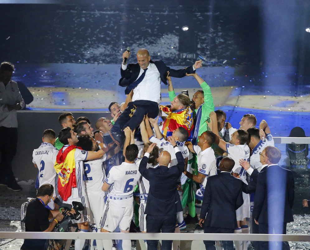 Foto 7: Zidane merayakan gelar juara Liga Champions 2016/17