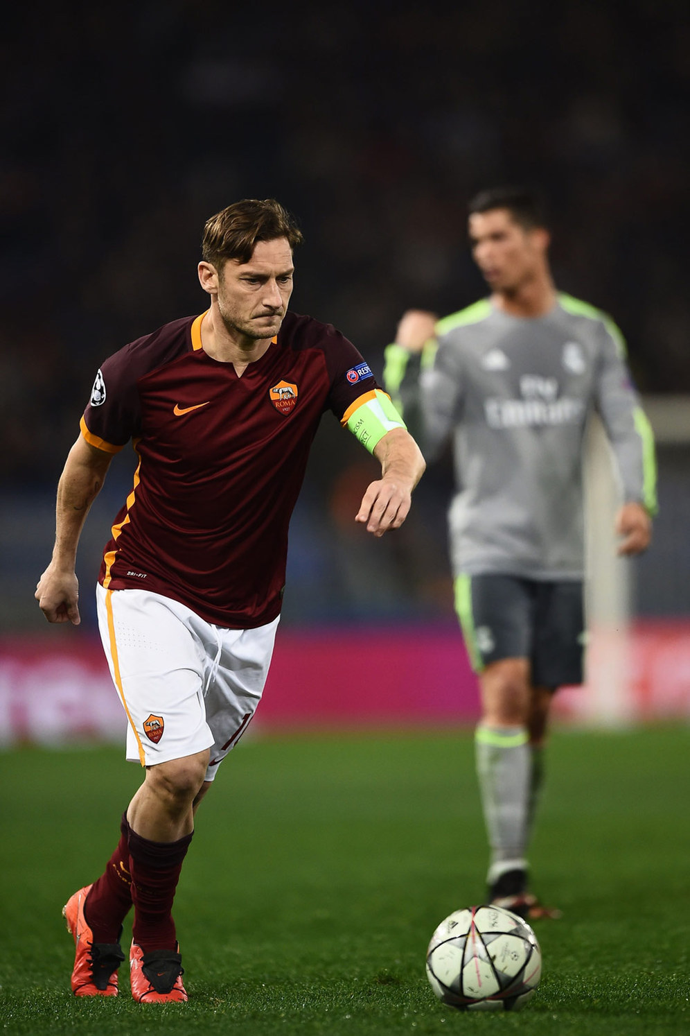 - AS Roma kalah 0-2 menjamu Real Madrid di leg pertama babak 16 besar Liga Champions 2015/16, Kamis (18/2). Kapten dan legenda hidup Roma Francesco Totti hanya bermain sebentar di penghujung babak kedua.