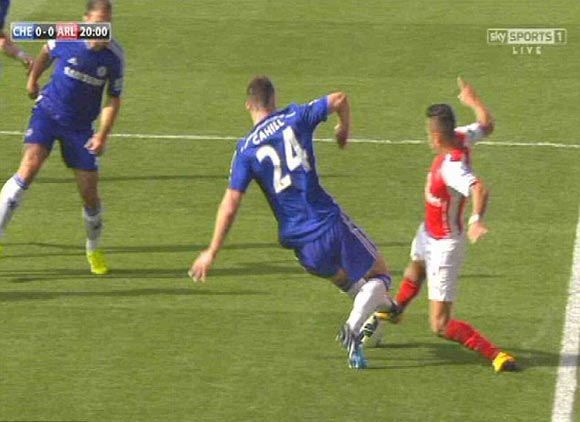 Kejadian bermula ketika Gary Cahill melakukan pelanggaran keras kepada Alexis Sanchez. Berikut gambarnya.