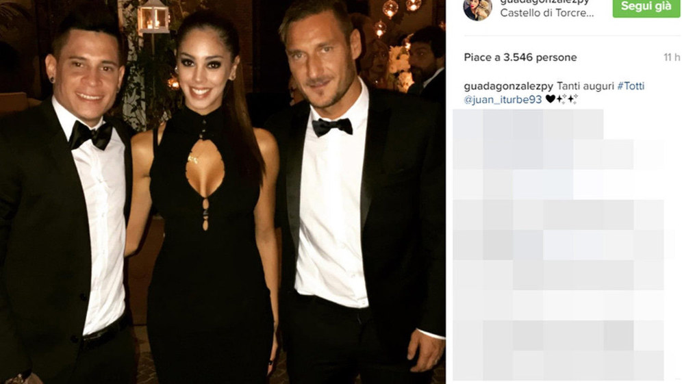 Totti datang bersama sang istri Ilary Blasi. Termasuk di antara para undangan adalah pelatih Luciano Spalletti, rekan-rekan Totti dan pasangan mereka, serta sejumlah mantan rekan seklub - Marco Borriello misalnya.