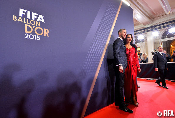 - Sergio Ramos tidak sendirian menghadiri Gala FIFA Ballon d'Or 2015 di Zurich. Bek Real Madrid dan Spanyol itu datang bersama pasangannya, Pilar Rubio.