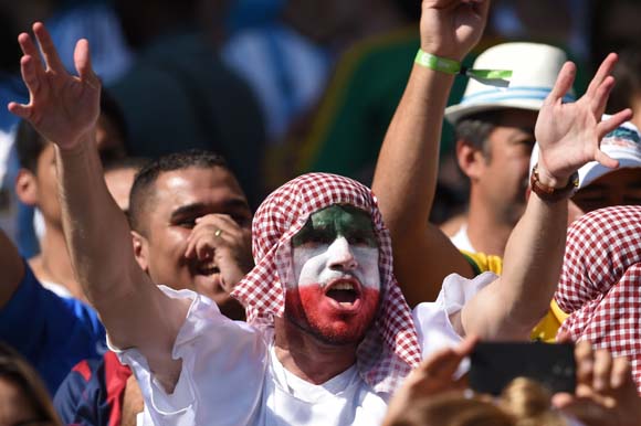 Bola.net - Argentina lolos ke babak 16 besar Piala Dunia 2014 berkat kemenangan dramatis 1-0 atas Iran dalam laga keduanya di Grup F, Sabtu (21/6). Inilah foto-foto terbaik para suporter kedua tim yang dirilis oleh AFP.