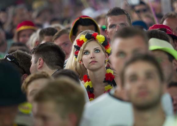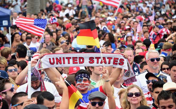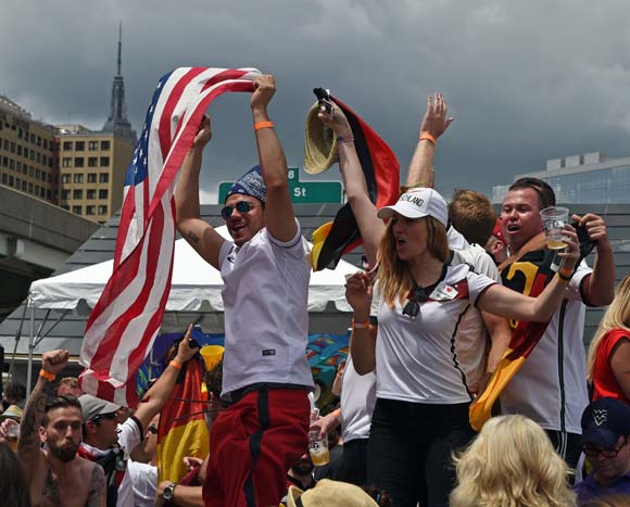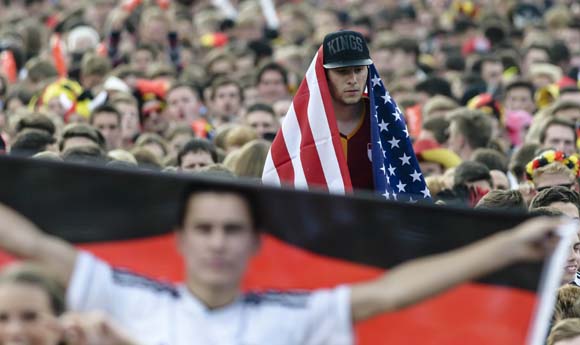 Bola.net - Jerman mengalahkan Amerika Serikat 2-1 di laga terakhir Grup G Piala Dunia 2014, Kamis (26/6). Jerman dan AS sama-sama lolos ke babak 16 besar. Ini adalah beberapa foto terbaik para suporter kedua tim yang dilansir oleh AFP.