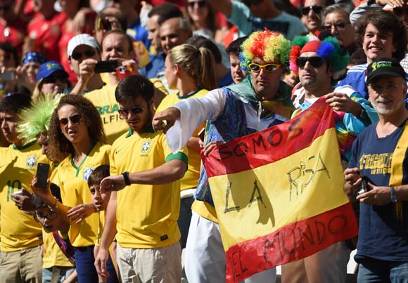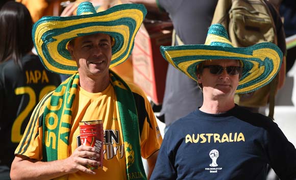 Bola.net - Spanyol mengalahkan Australia 3-0 dalam laga terakhirnya di Grup B Piala Dunia 2014, Senin (23/6). Inilah beberapa foto terbaik para suporter kedua tim yang dilansir oleh AFP.