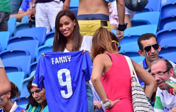 Kekasih striker Italia Mario Balotelli, Fanny Neguesha, juga terlihat di tribun.