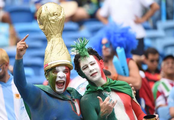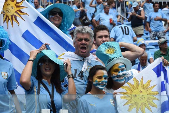 Bola.net - Italia dikalahkan Uruguay 0-1 dalam laga pemungkas Grup D Piala Dunia 2014 dan gagal lolos ke babak 16 besar. Uruguay melaju ke putaran berikutnya, Selasa (24/6). Inilah beberapa foto terbaik para suporter kedua tim yang dilansir oleh AFP.
