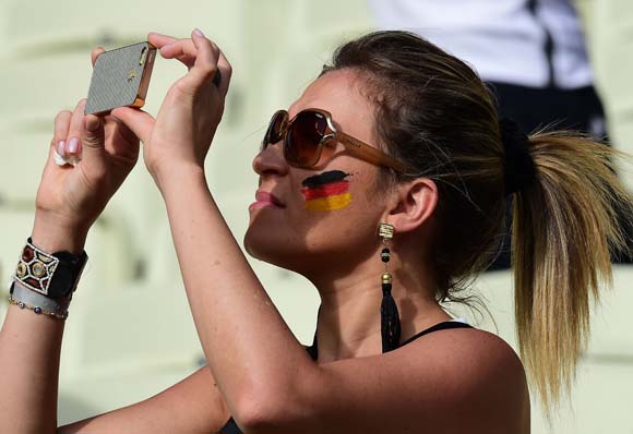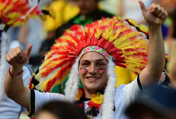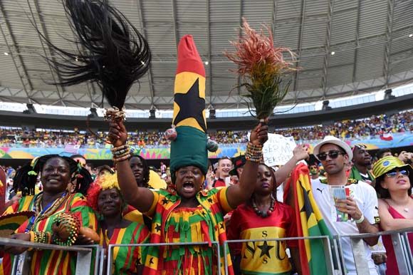 Bola.net - Jerman hanya sanggup bermain imbang 2-2 melawan Ghana dalam laga keduanya di Grup G, Minggu (22/6). Inilah foto-foto terbaik para suporter kedua tim yang dirilis oleh AFP.