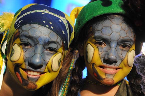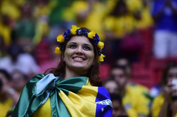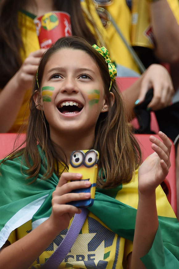 Bola.net - Tuan rumah Brasil memastikan diri lolos ke babak 16 besar Piala Dunia 2014 sebagai juara Grup A setelah menghajar Kamerun 4-1 di Estadio Nacional Mane Garrincha, Brasilia, Selasa (24/6). Inilah beberapa foto terbaik para suporter kedua tim yang dilansir oleh AFP.