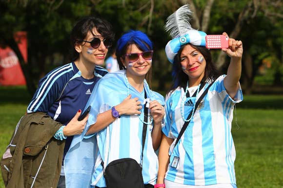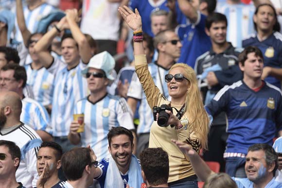 Istri kiper Argentina Sergio Romero juga tampak di tribun berbaur dengan para suporter La Albiceleste.