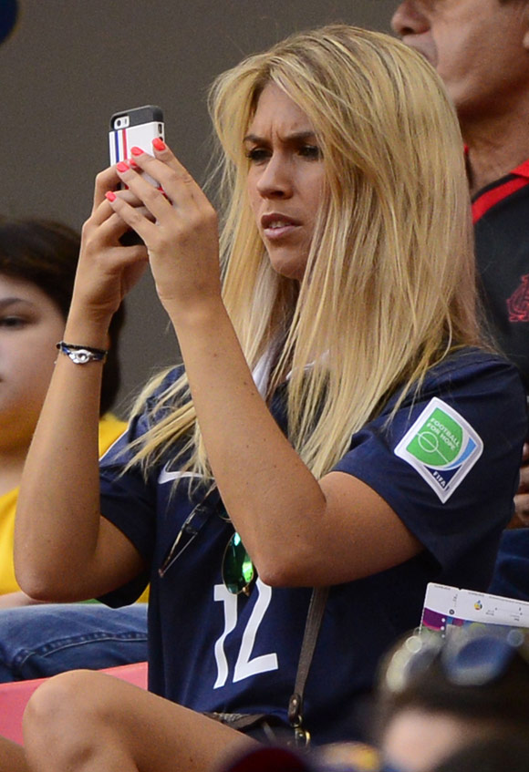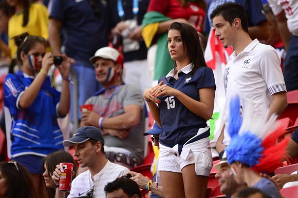 Di tribun, tampak juga dua WAGs Prancis, yakni Ludivine Sagna (istri Bacary Sagna) dan Elodie Mavuba (istri Rio Mavuba).