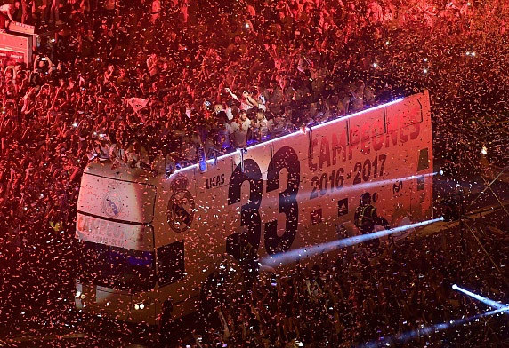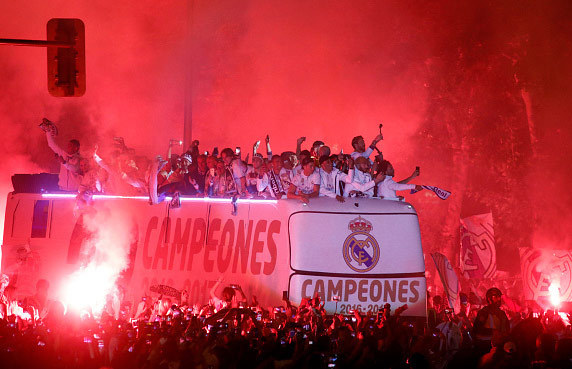 Perayaan juara Madrid ini tanpa henti, dari atas lapangan La Rosaleda ke ruang ganti, hingga diakhiri di Plaza de Cibeles. Berikut beberapa foto dan videonya.