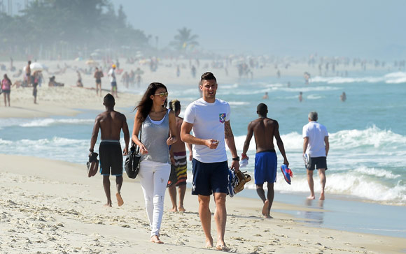 Bek Prancis Bacary Sagna dan si seksi Ludivine memilih untuk bersantai di sebuah pantai di Rio de Janeiro. Namun, Sagna bukan satu-satunya pemain Les Bleus yang meluangkan waktu liburnya di pantai Rio. Di pantai yang lokasinya berbeda dengan yang dikunjungi Sagna, striker Olivier Giroud tampak sangat mesra bersama sang istri Jennifer.